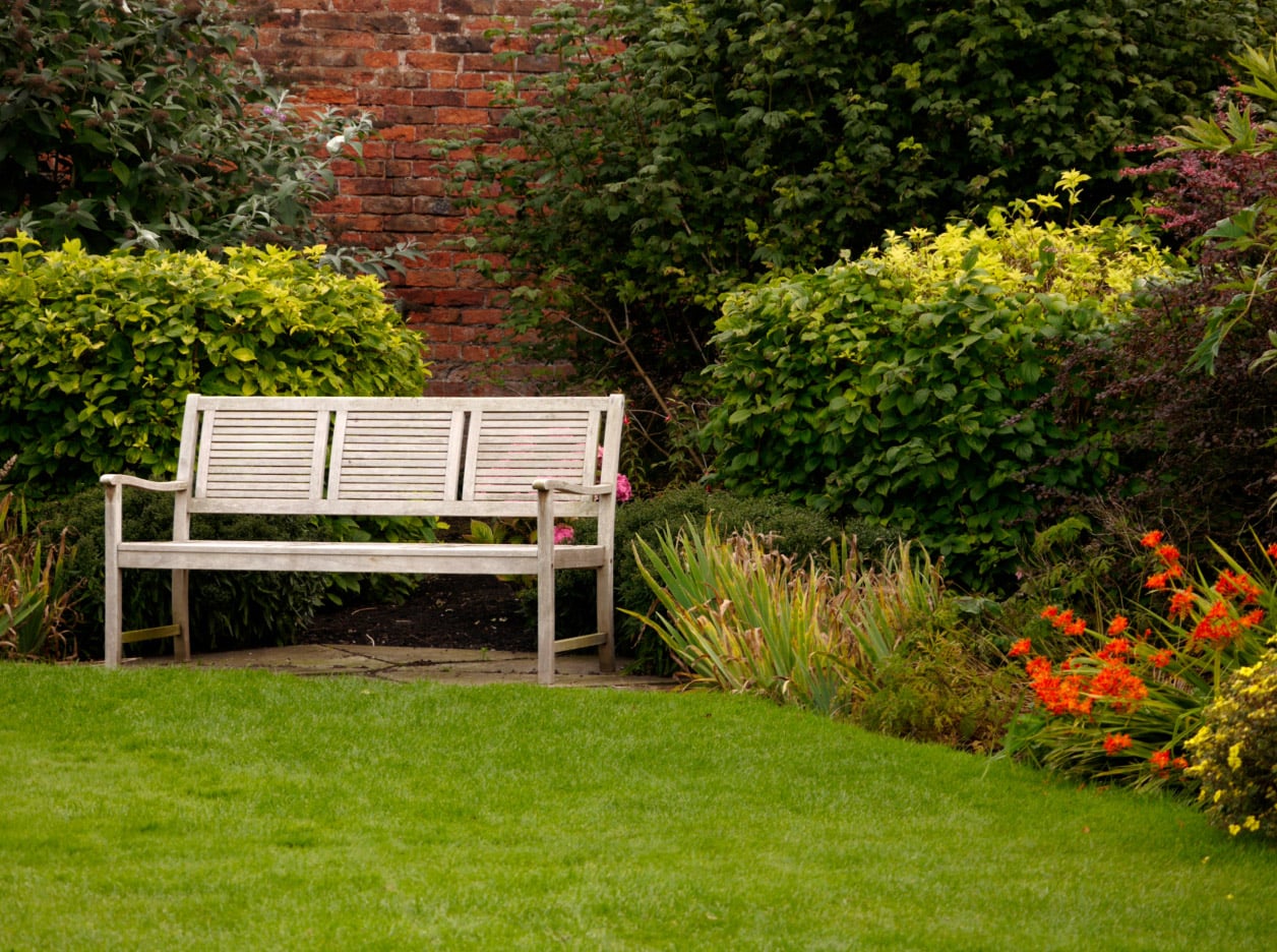 Kombination aus Holz-Lamellen, Metallgittern und Heckenpflanzen für Sichtschutz und natürliche Optik.