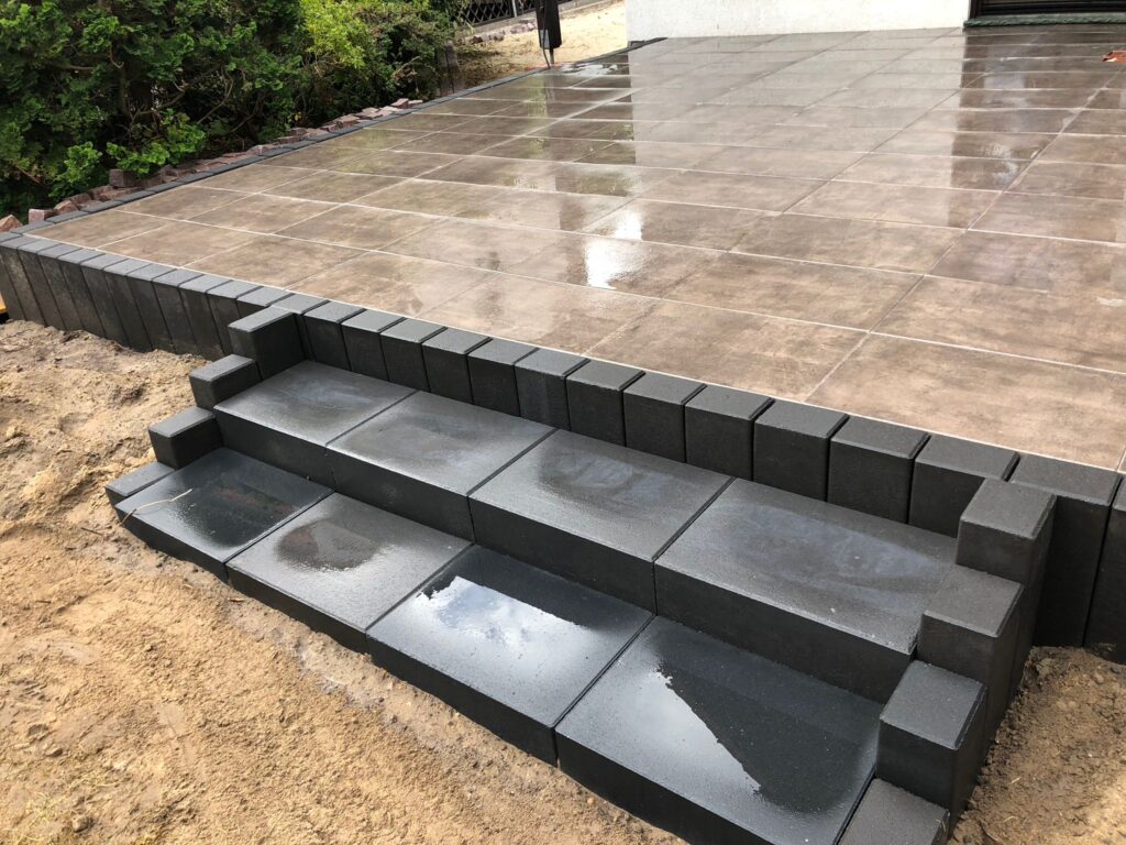 Betonierte Pfosten mit Drainageschutz für Stabilität auf Hanglagen und frostresistentem Unterbau.
